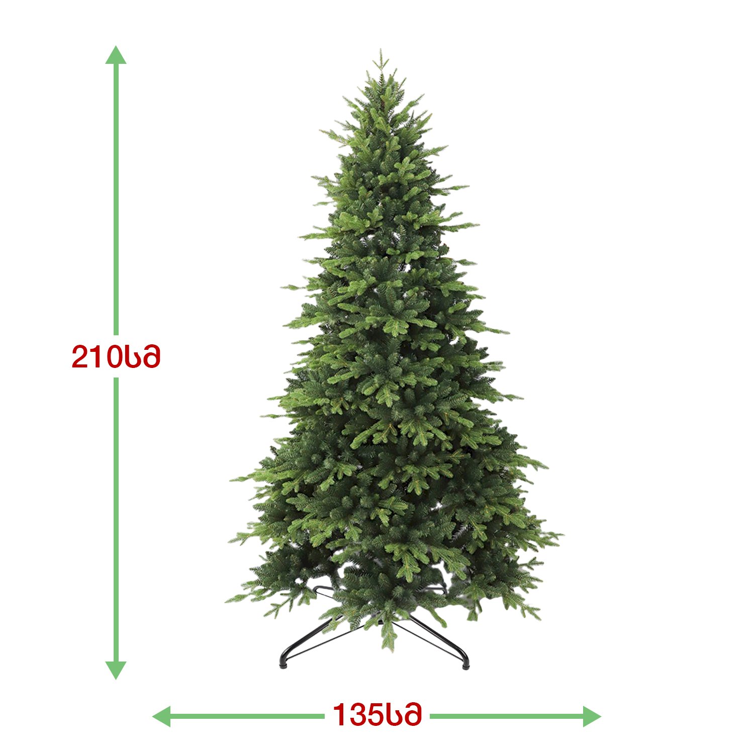 ბუნებრივის მსგავსი ნაძვის ხე, დრეკადი მეტალის ტოტებით და ჯანმრთელობისთვის უსაფრთხო მასალისგან დამზადებული შერეული ორი ფერის, სილიკონის და PVC წიწვით . მეტალის მყარი სადგამით და მთავარი ღერძით.