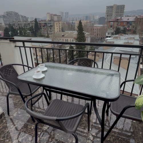 ნაკრებში შედის 1 მაგიდა, ქოლგის სამაგრით ზომით : 120*70*70