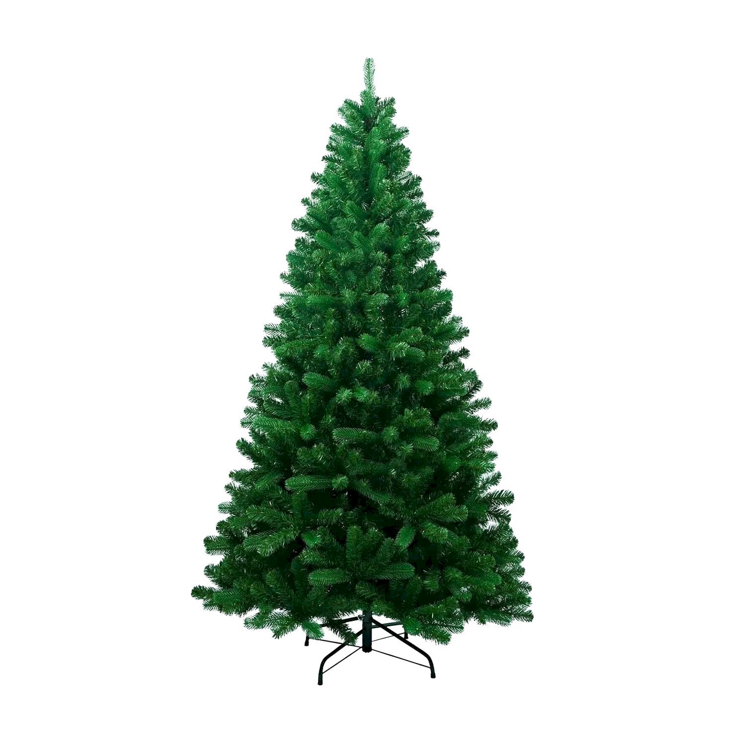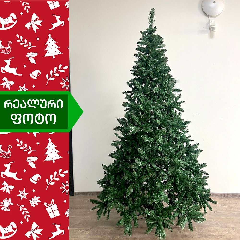 სადა მწვანე ნაძვის ხე გამძლე დრეკადი მეტალის ტოტებით და ჯანმრთელობისთვის უსაფრთხო მასალისგან დამზადებული წიწვებით. მეტალის მყარი სადგამით და მთავარი ღერძით.