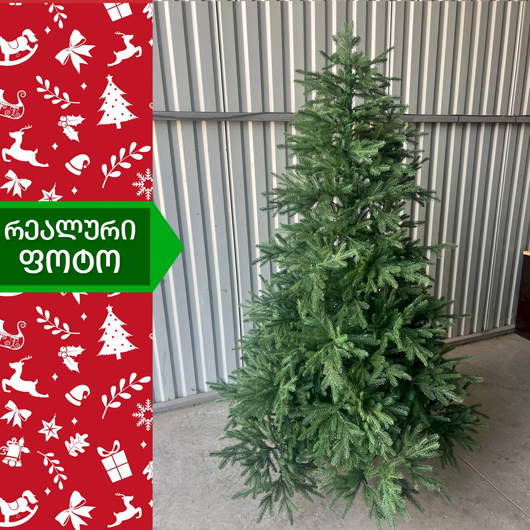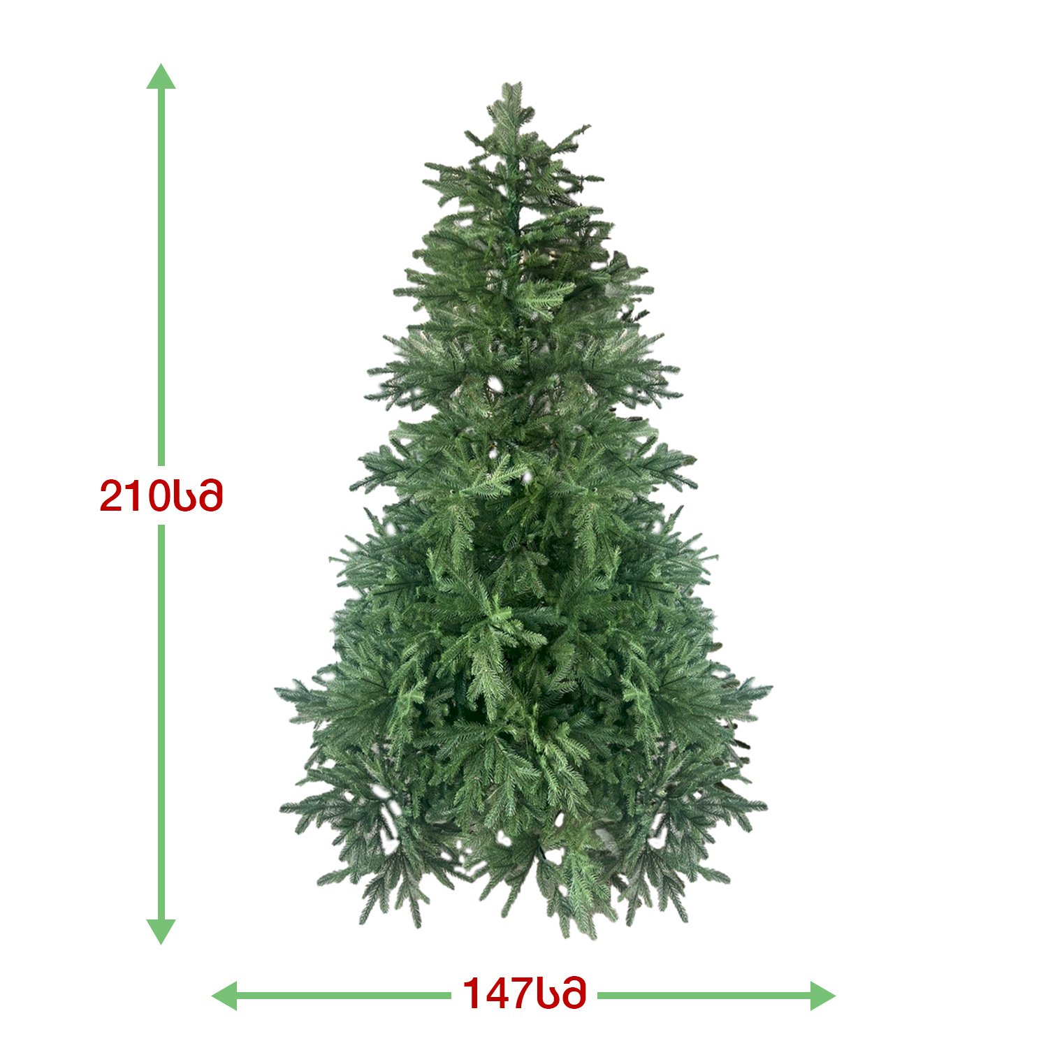 ბუნებრივის მსგავსი მწვანე ნაძვის ხე, დამზადებული 100% სილიკონის წიწვებით. გამძლე დრეკადი მეტალის ტოტებით და ჯანმრთელობისთვის უსაფრთხო მასალისგან დამზადებული წიწვებით. მეტალის მყარი სადგამით და მთავარი ღერძით.