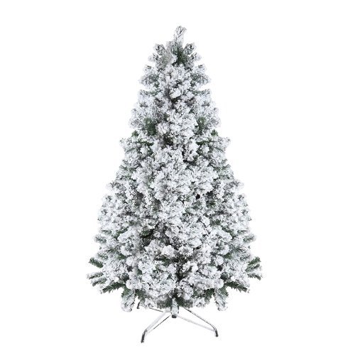 დათოვლილი ნაძვის ხე გამძლე დრეკადი მეტალის ტოტებით და ჯანმრთელობისთვის უსაფრთხო მასალისგან დამზადებული წიწვებით. მეტალის მყარი სადგამით და მთავარი ღერძით.