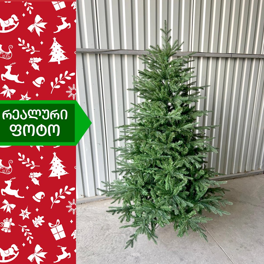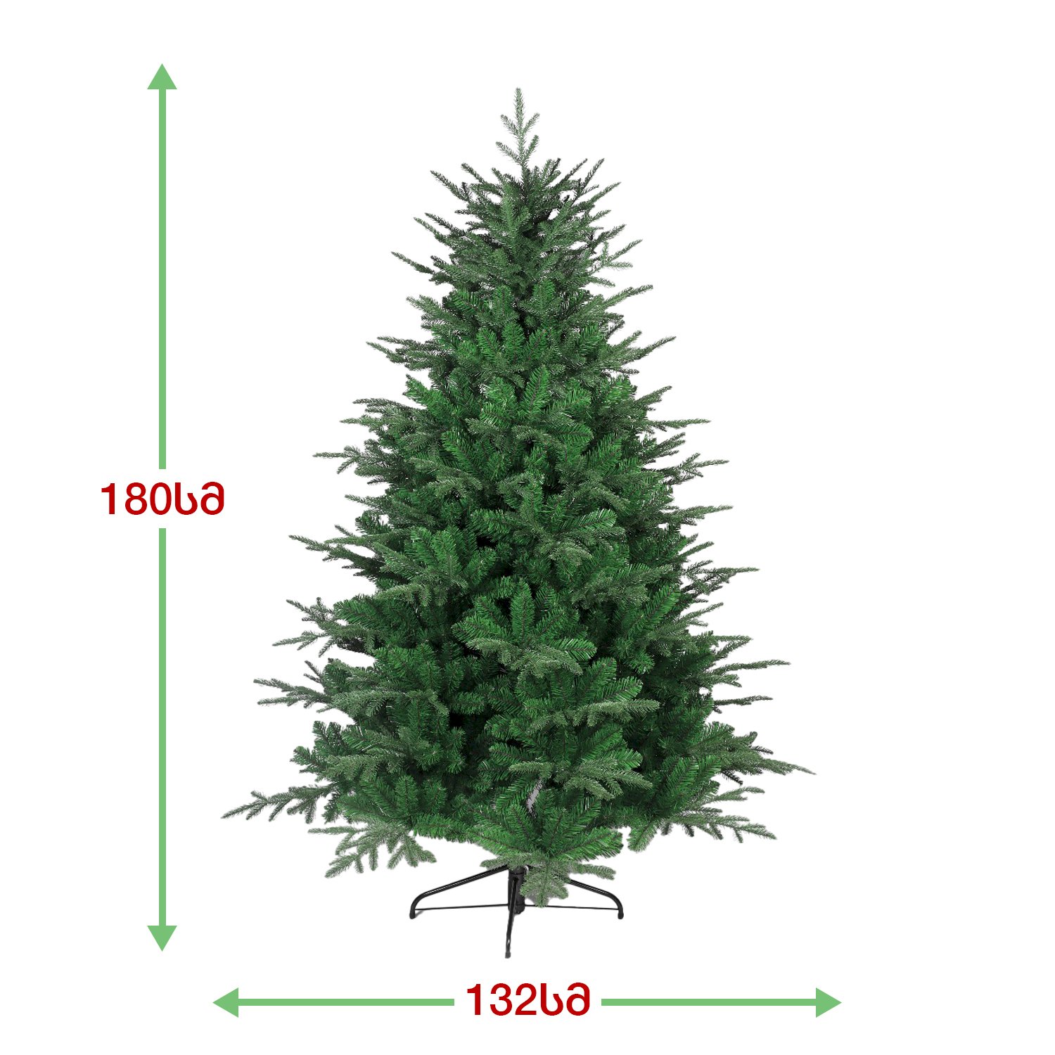 ბუნებრივის მსგავსი ნაძვის ხე, დრეკადი მეტალის ტოტებით და ჯანმრთელობისთვის უსაფრთხო მასალისგან დამზადებული შერეული ორი სახეობის სილიკონის და PVC წიწვით . მეტალის მყარი სადგამით და მთავარი ღერძით.
