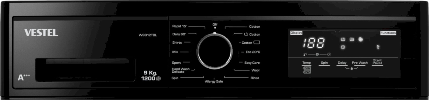 • მართვა: ელექტრონული (პროგრამების შესარჩევი მბრუნავი ღილაკი)